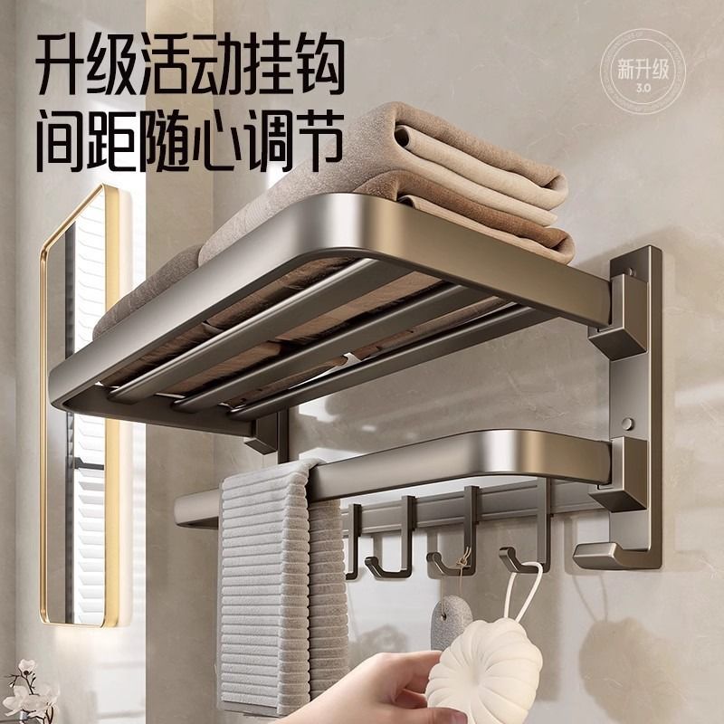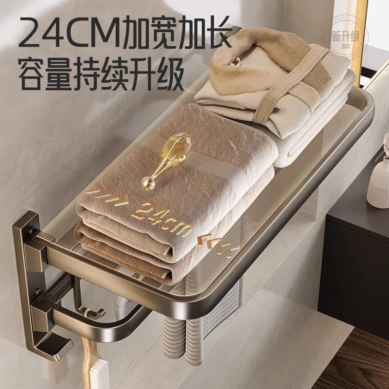 Space Aluminum Bathroom Wool Towel Rack Wall-mounted Free toilet toilet Toilet Shelf Bath Towel Rack Bathroom contained-Taobao