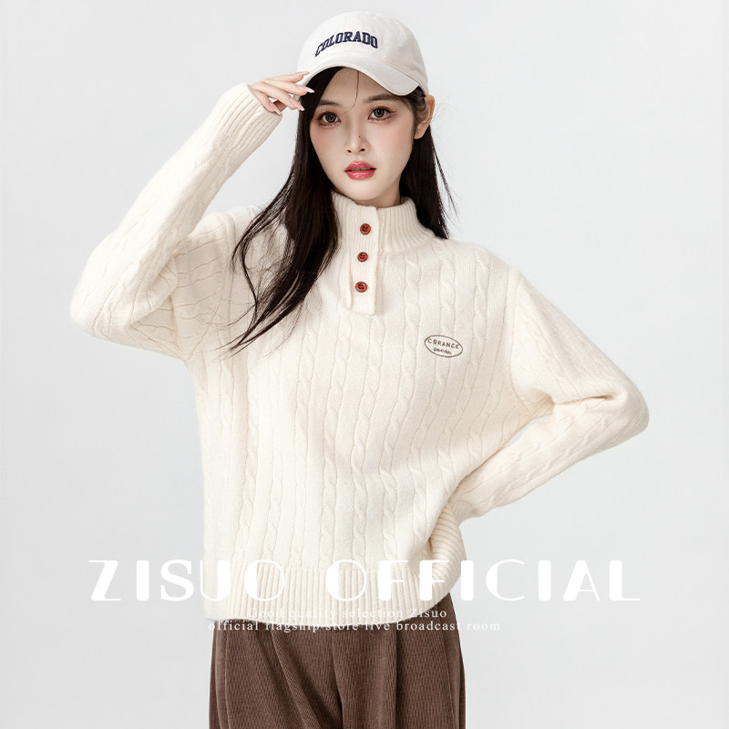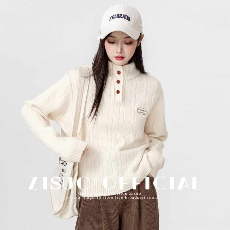 2023 autumn winter new rice white half high collar sweater women's winter warm and thickened design sense beating undershirt blouses-Taobao