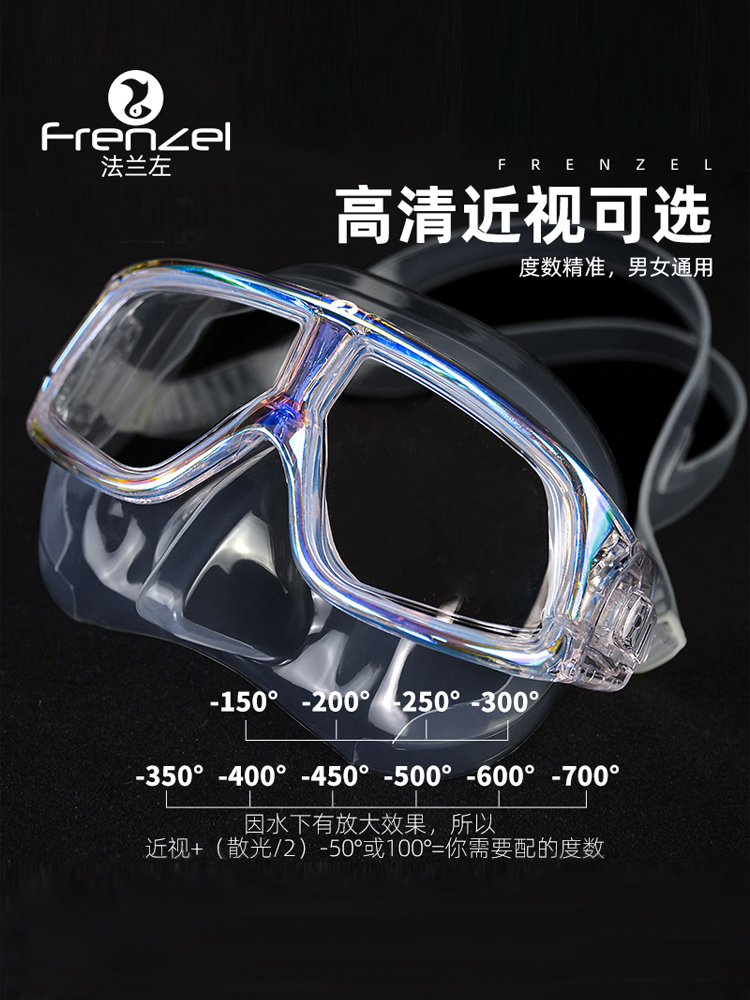 FRENZEL Flange Left Whale Color Myopia Free Diving Mirror Ultra Light Comfort Soft Silicone Transparent Beauty-Taobao