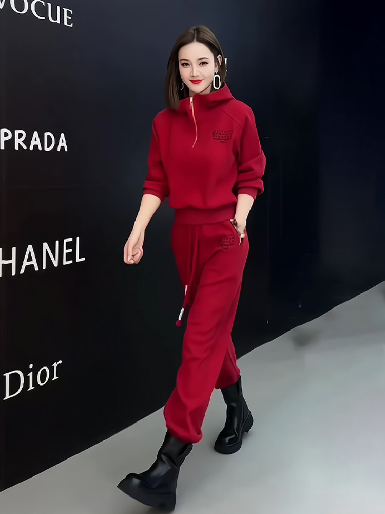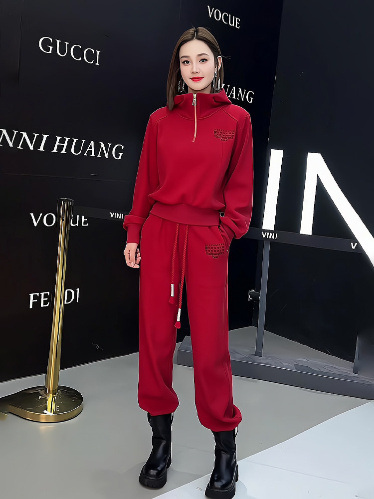 Red Plus Suede Blouse Pants Red Thin Blouse Pants Apricots Color Plus Suede Blouse Pants.