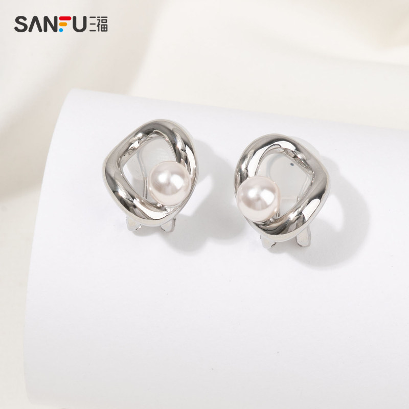 Sanfu Retro Pearl Ear Clip a pair of fashion French style small crowdsourced Gentle Ornament Jewelry Earrings 826514-Taobao