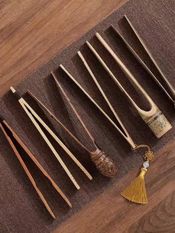 Bamboo Tea Pinch Tea Leaf Tweezers Anti-Burn Tea Cup Clamp Suit Natural Bamboo Root Single Korn Tea Accessories-Taobao