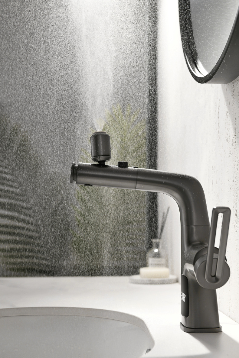 German white pull-out washbasin tap hot and cold can lift swivel telescopic face basin tap wash head-Taobao