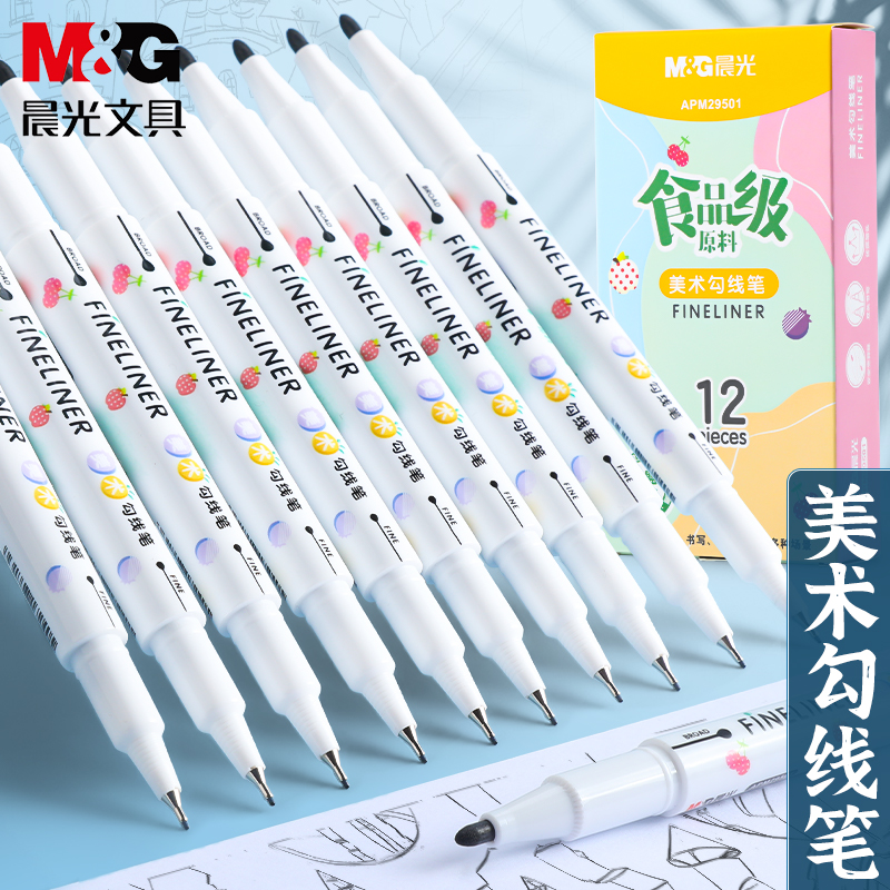 Morning Light Double Head Hook Line Pen Fine Arts Special Elementary School Children Kindergarten Drawing Food Grade Raw Material Water-based-Taobao