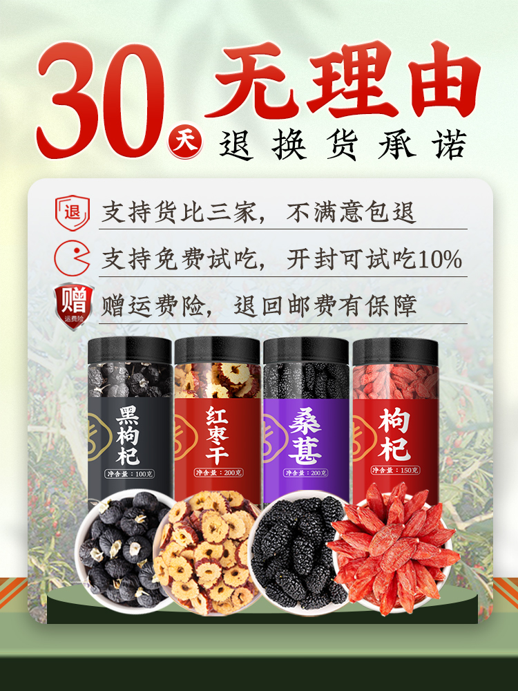 Mulberry Special Class Wolfberry Ningxia Black Medlar Red Date Dry Health Preserving Composition Flower Fruits Tea Men Women Staying Up Night Qi And Blood Kidney-Taobao