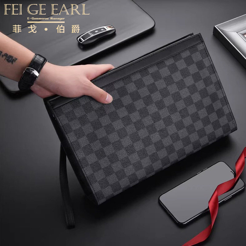 Men's Handbags Leather Luxury High-end Plaid Letter Enveloping Business Casual Large Capacity Hand Grip Bag-Taobao