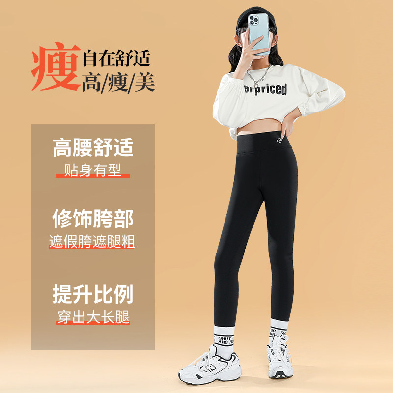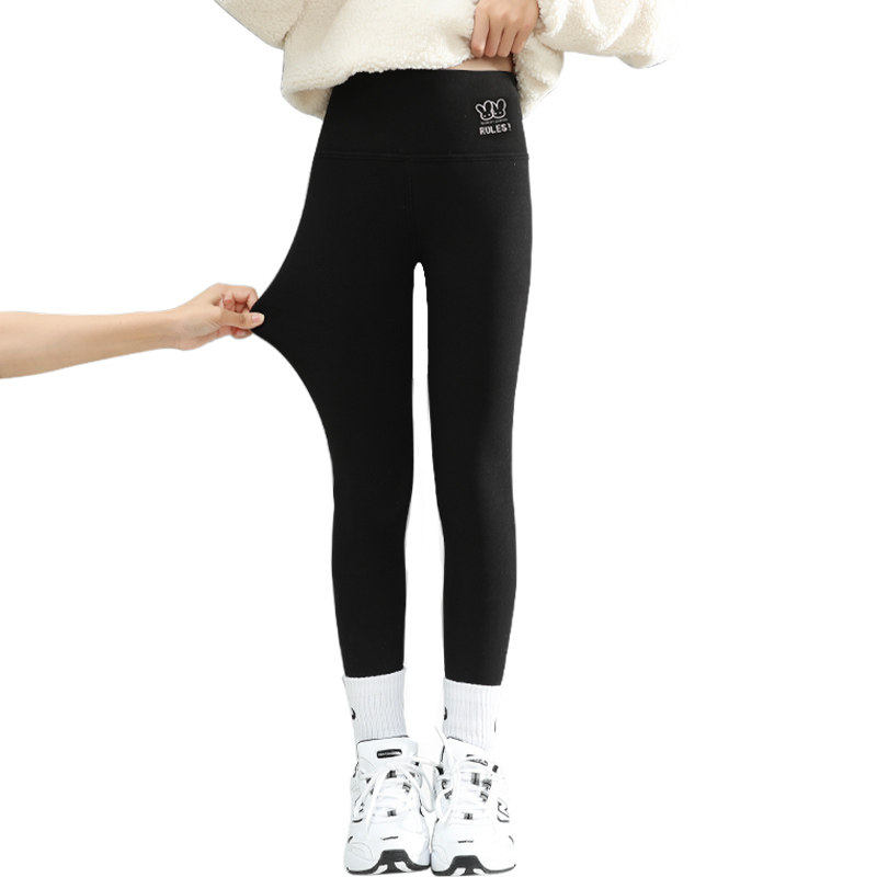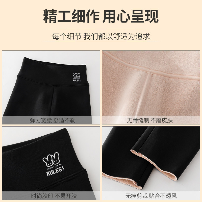 Girl Beats Bottom Pants Plus Suede Children Winter Out of Thickened Sharks Large Children Autumn Winter Black Barbie Winter Pants-Taobao