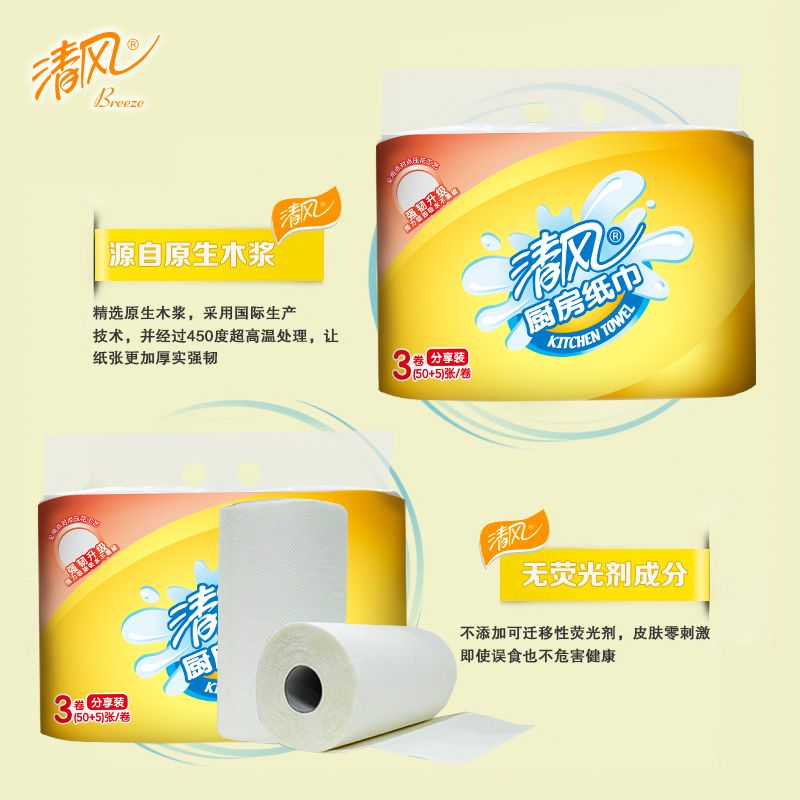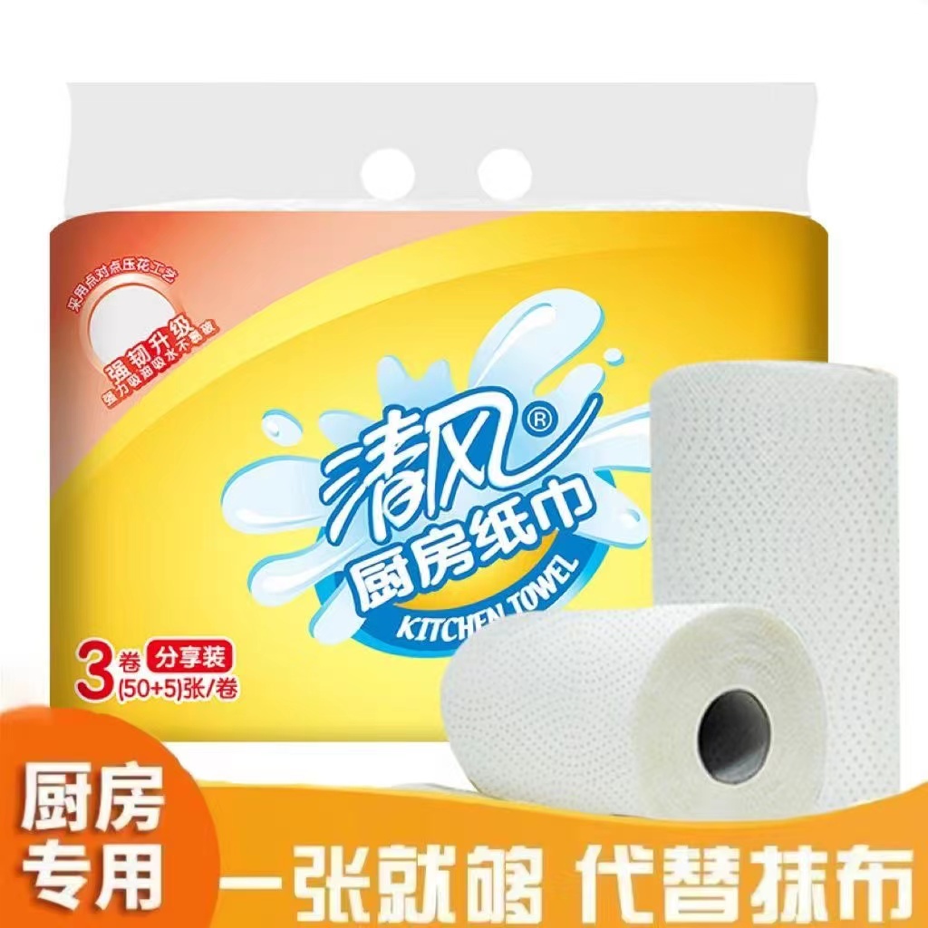 Clear Wind Kitchen Paper Towels 55 sections 3 volumes 1 lift Thickened Sloth Man Rag Super Thick Rolls Affordable Suction Oil Suction Decontamination-Taobao