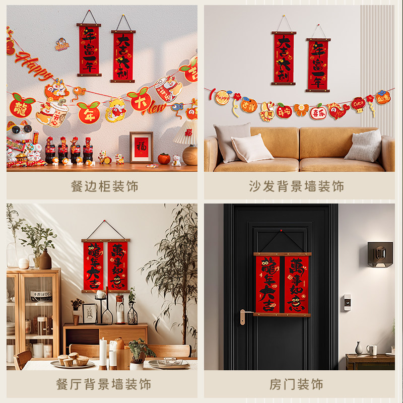 Small Couplets 2024 Dragon Year New Country Tide Lunar New Year Home New Year Hang Accessories in the family's Spring Festival couplets Forword pendant 2401-Taobao