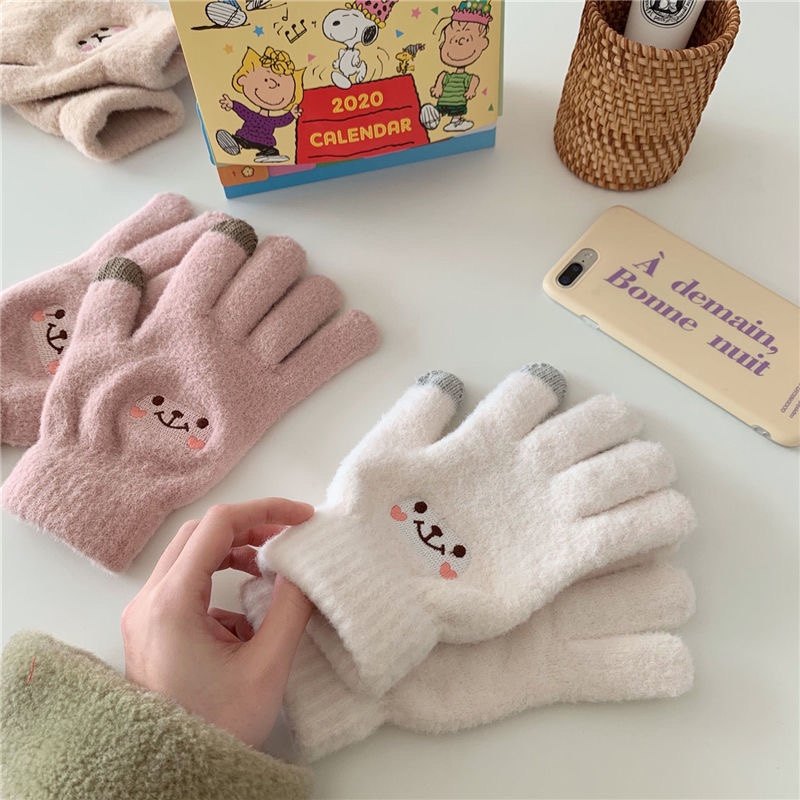 (Anqing Fan Exclusive) Q gloves Winter warmth student Han version of cute woman Cavet thickened bicycling Five fingers-Taobao