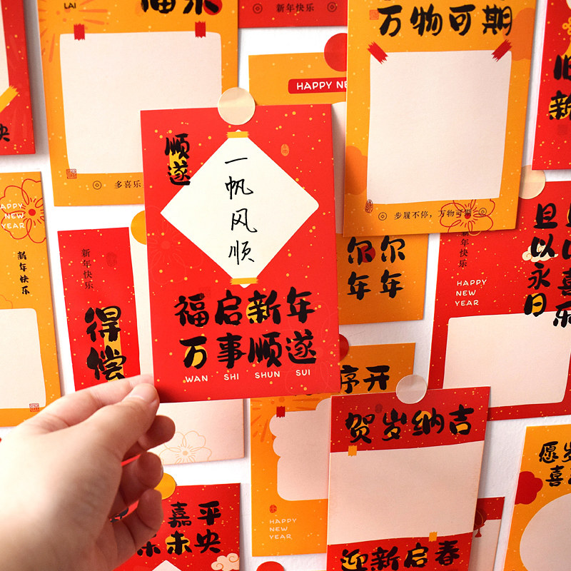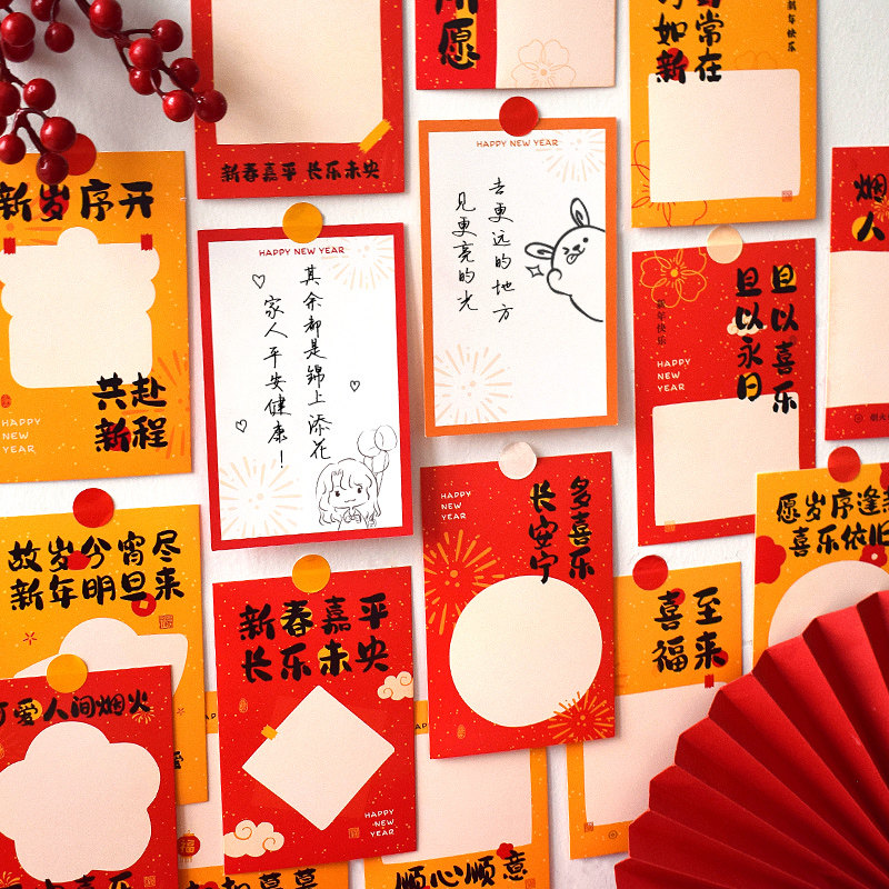 New Year's Day decorations on New Year's Eve Decorative Wall Sticklegreeting Cards Handwritten Wishing Blessing Cards Paper Dragon Year Chinese Wind Students Small Gifts-Taobao