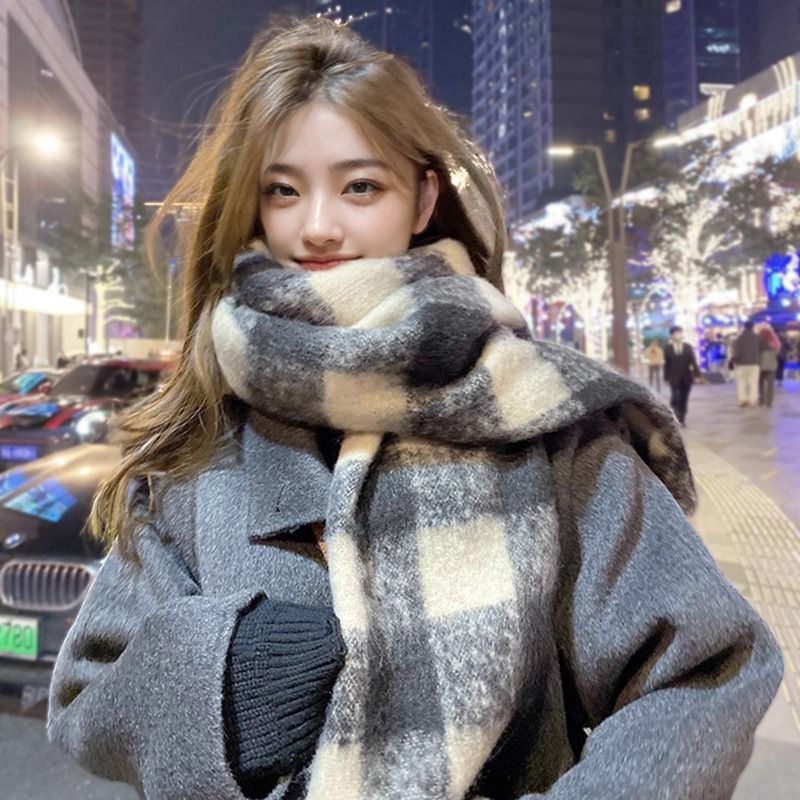 Black-and-white lattice --- Yu Shuxin in the same style blue brown lattice --- Yu Shuxin Tongan Hongge --- Yu Shuxin Tongyu Mei Lad (atmosphere sensation scarf) black curry rhombus (bifacial can be worn) imitation cashmere