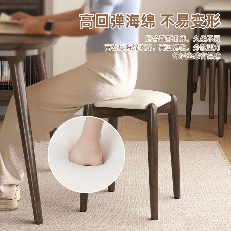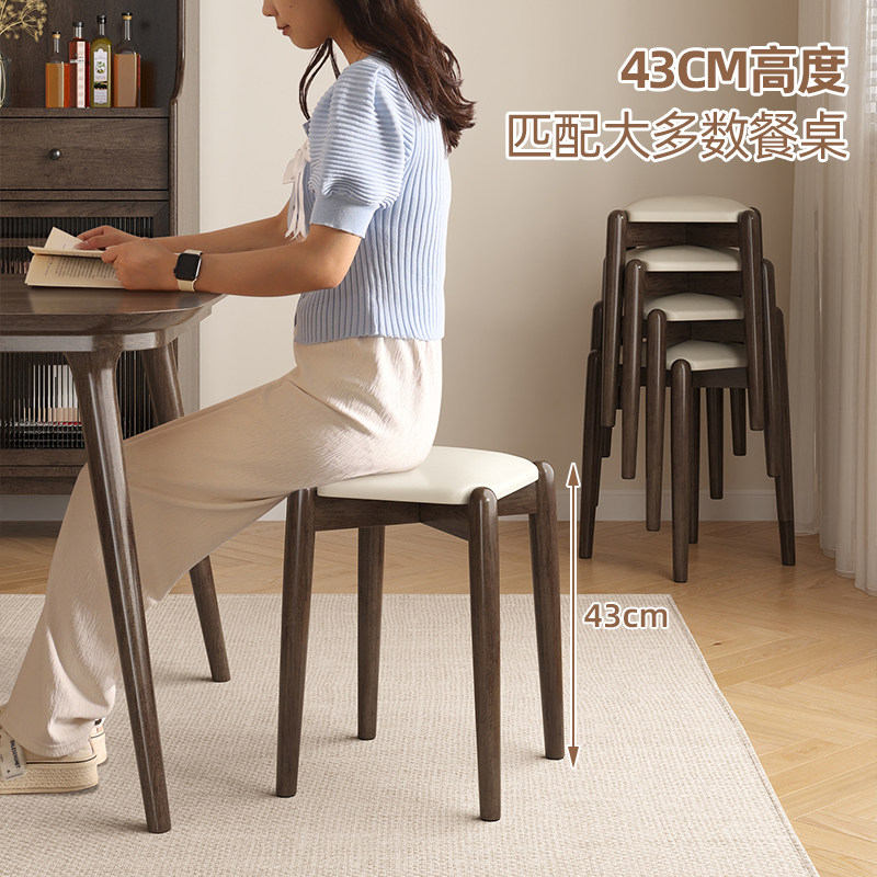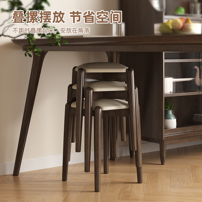 Solid Wood Soft Bag Dining Chair Home Chinese Style Stackable Table Chairs Modern Minima Living-room Small Stool Wood Bench-Taobao