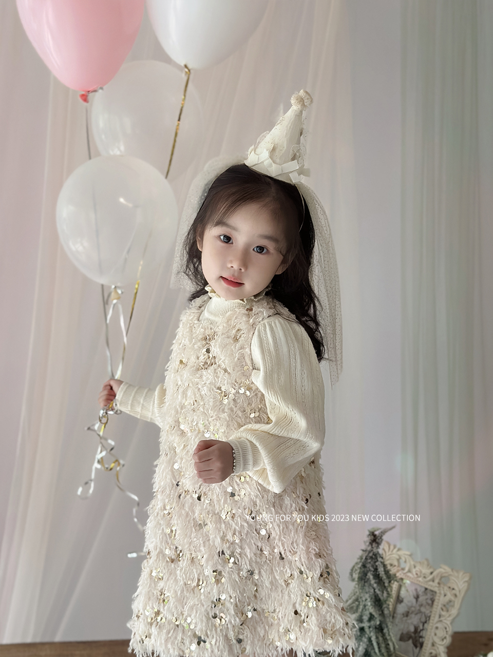 YFY girl feather sequin brightly dress with dress birthday gown with cotton thickened vest dress temperament children New Year's suit-Taobao