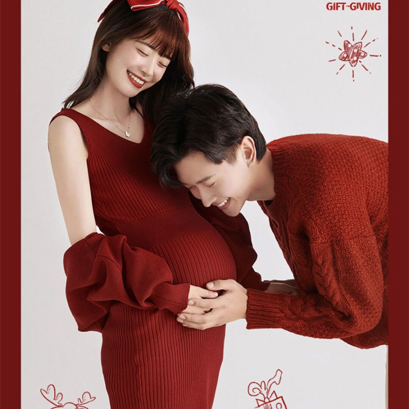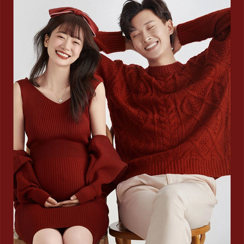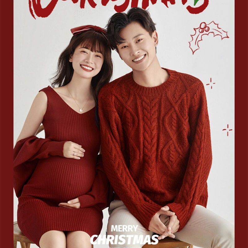 Sweet Merry Christmas Sweater New Pregnant Woman Photos Tennis Red New Year Christmas Themed Art Pregnant Woman Photos Knitted Sweater-Taobao