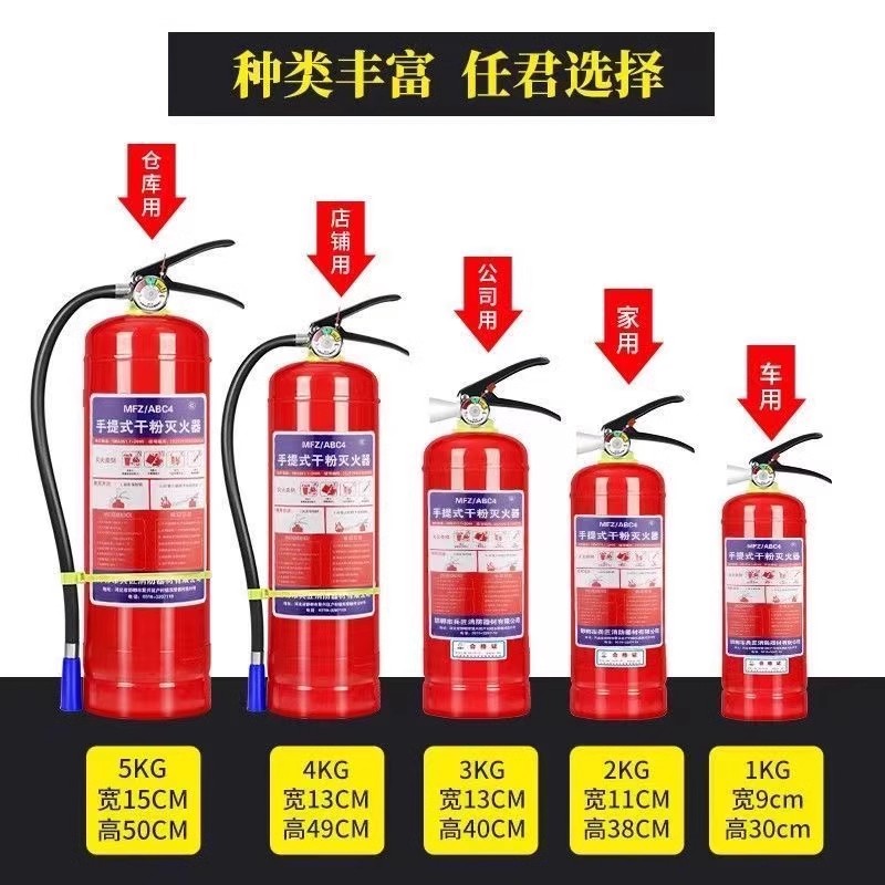 1 kg (3C national standard fire certification) for vehicle 2 kg (3C national standard fire certification) for car-home 3 kg (3C national standard fire certification) household-shop 3 kg (3C national standard