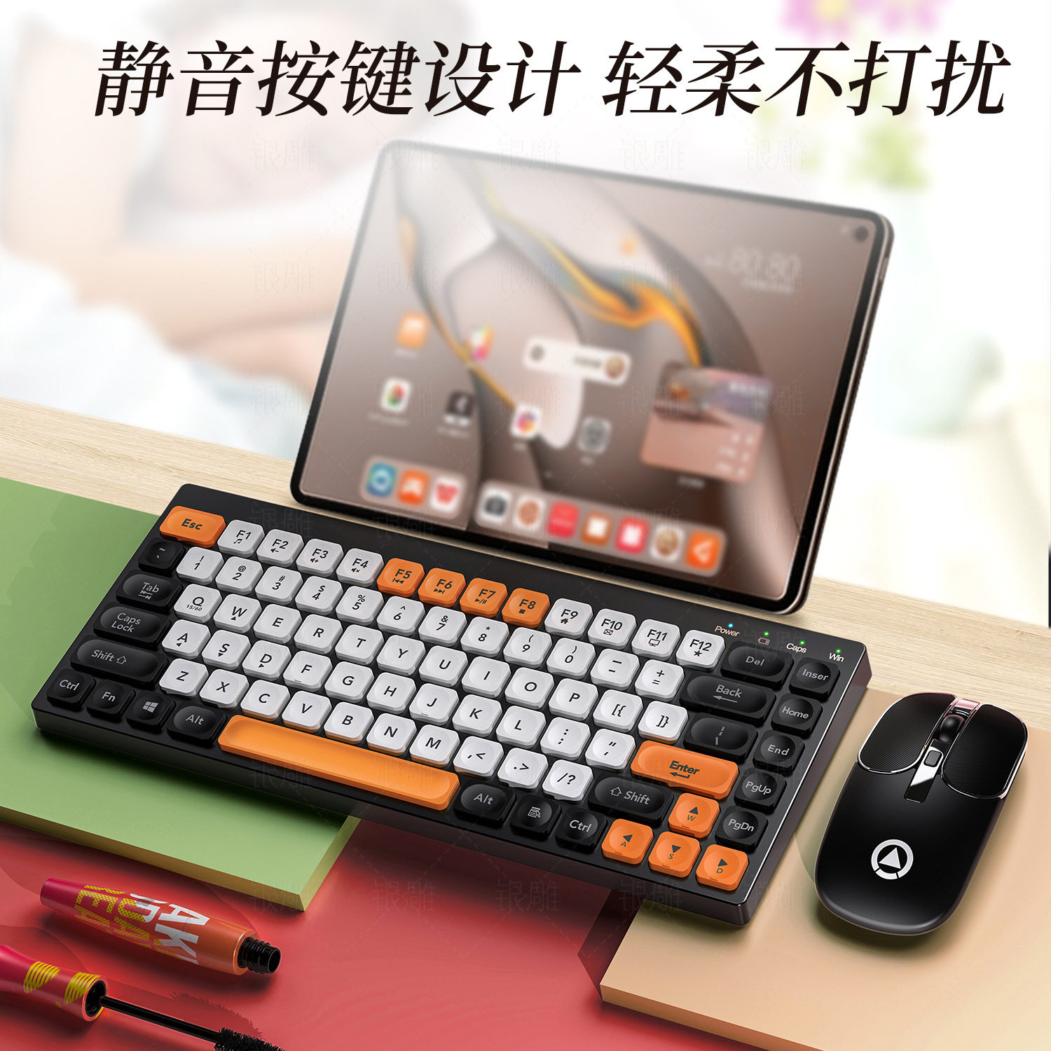 Silver Carving Cartoon Wireless Bluetooth Small Keyboard Mouse Suit Digital Mute Mini Business Office Long Sequel Girls-Taobao