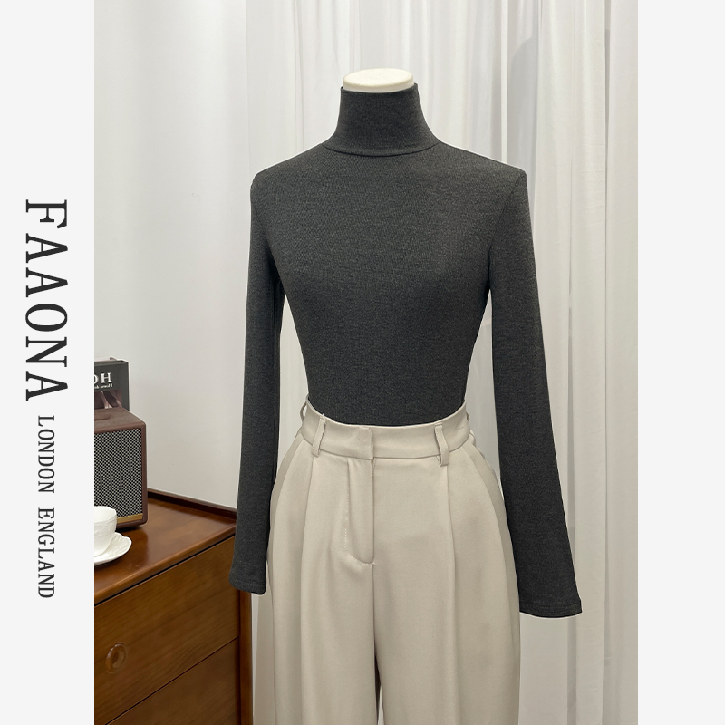 (Exploits Recommendation) High Collar Plus Suede Pure Color Undershirt Woman Autumn Winter Inner Lap Thickened 2023 New Black Blouse-Taobao