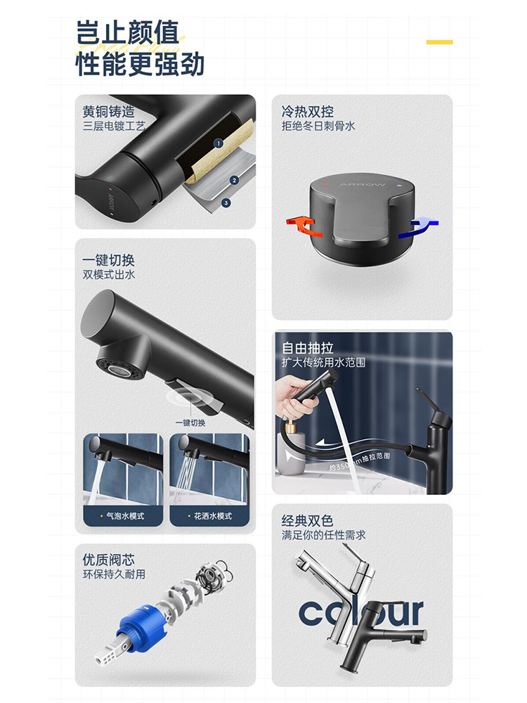 Arrow plate tap hot and cold terrace basin washbasin washbasin sink with pull-out plus high face basin high foot telescopic tap-Taobao