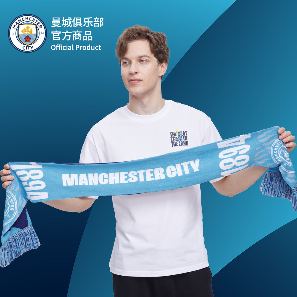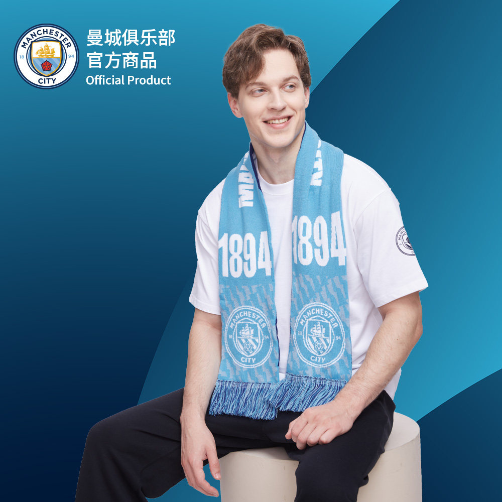 Official merchandise for the Manchester City club) Fans help with Emblem Scarf Winter Knit Warm Football Scarves-Taobao