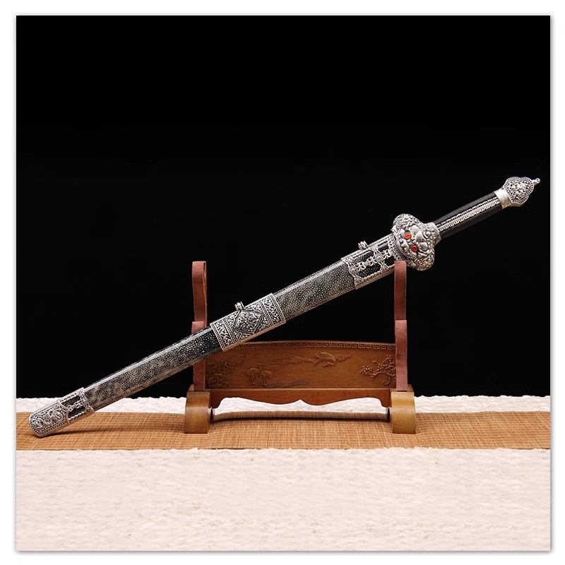 Dragon Springs and the word treasure sword Charlong great teacher pure handmade big Ming Yongle sword flower pattern steel Han sword Qin sword not cutting edge-Taobao