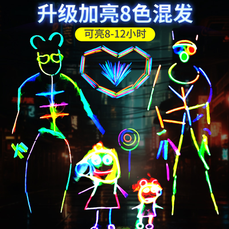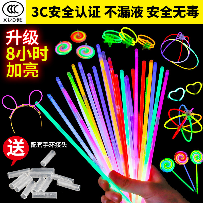 Seven Colorful Fluorescent Sticks Children's Party Annual Meeting Birthday Party Props Luminous Heads Decorated Silver Glowing Strips of Fluorescent Bracelet-Taobao