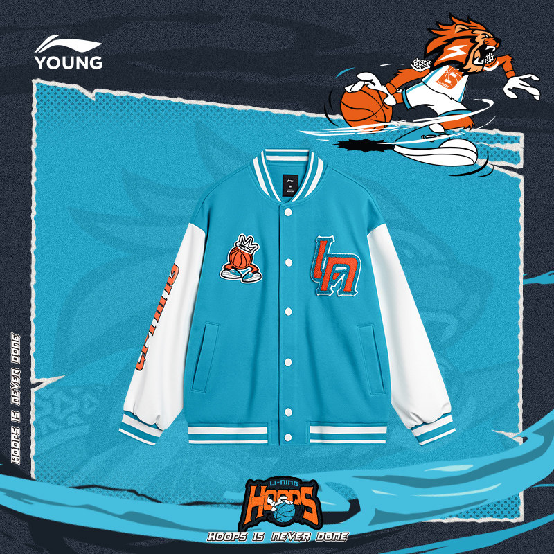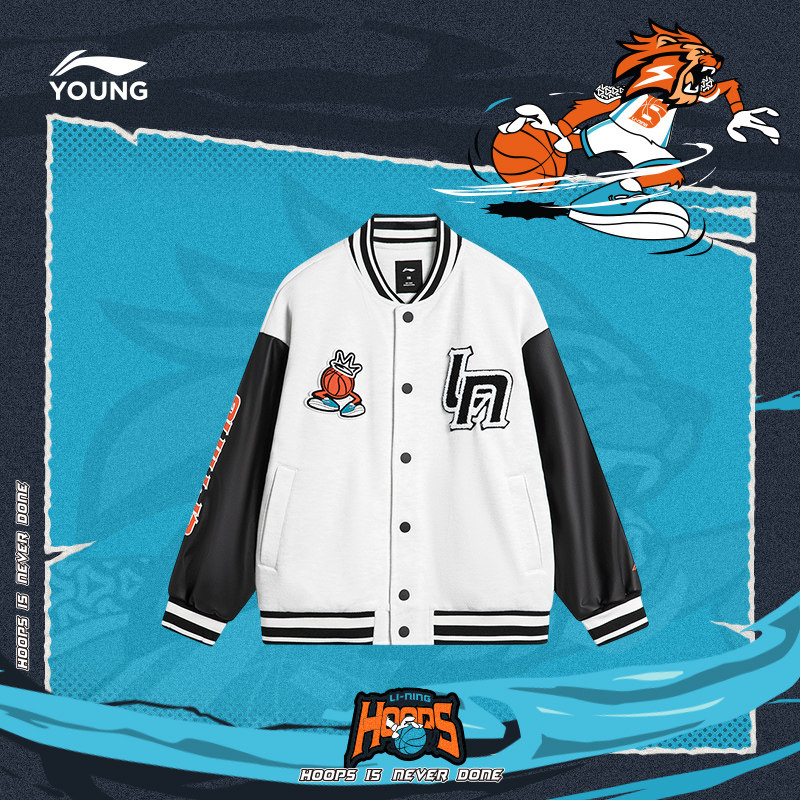 Li Ning Child Clothing Jacket Men's Great Boy Basketball Series Cardiovert Long Sleeve Jacket Baseball LOOSE SPRING SPORTSWEAR-Taobao