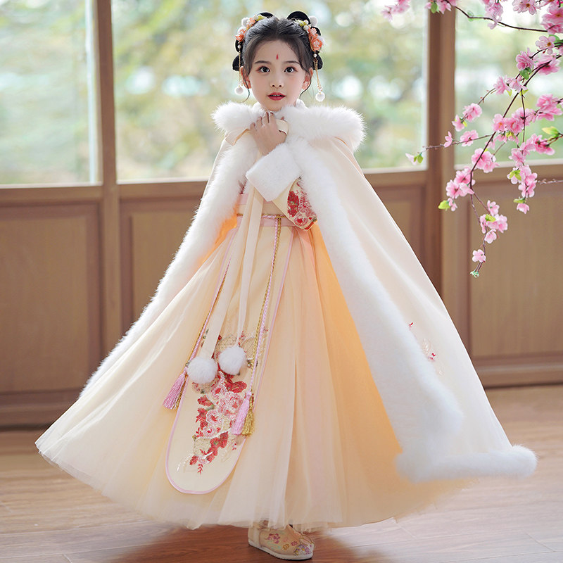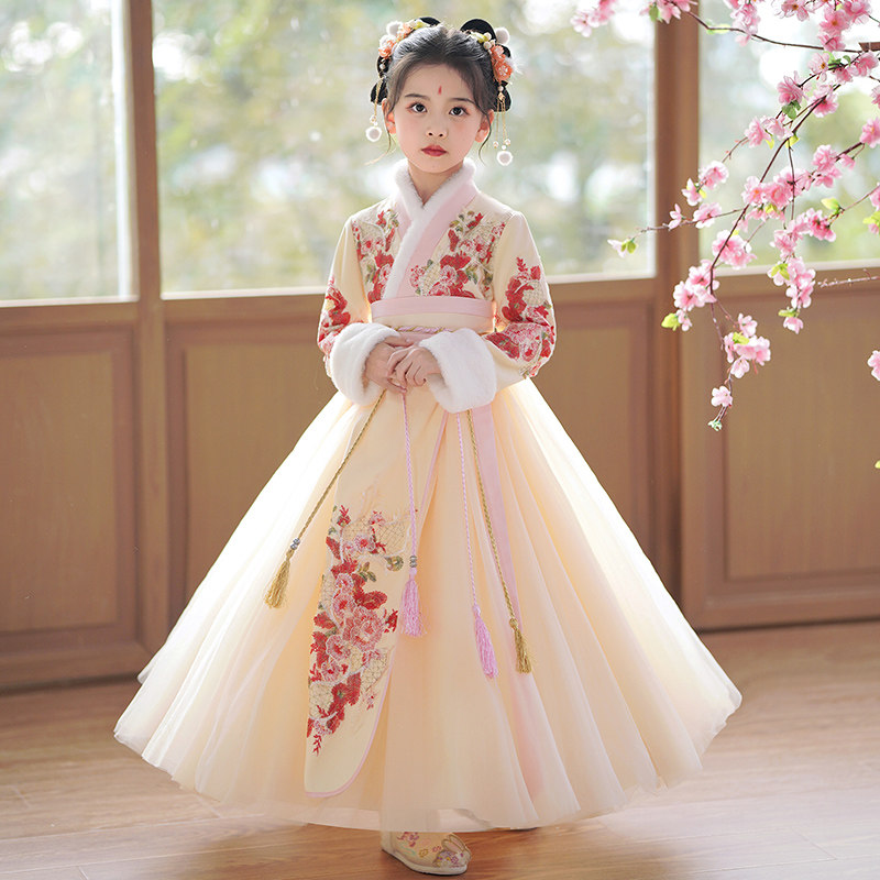 Han Fu Girl Autumn Winter Ancient Dress Superfairy dress with wind suit Down dress Princess Winter Skirt Thickened Children's Year of Bayou-Taobao