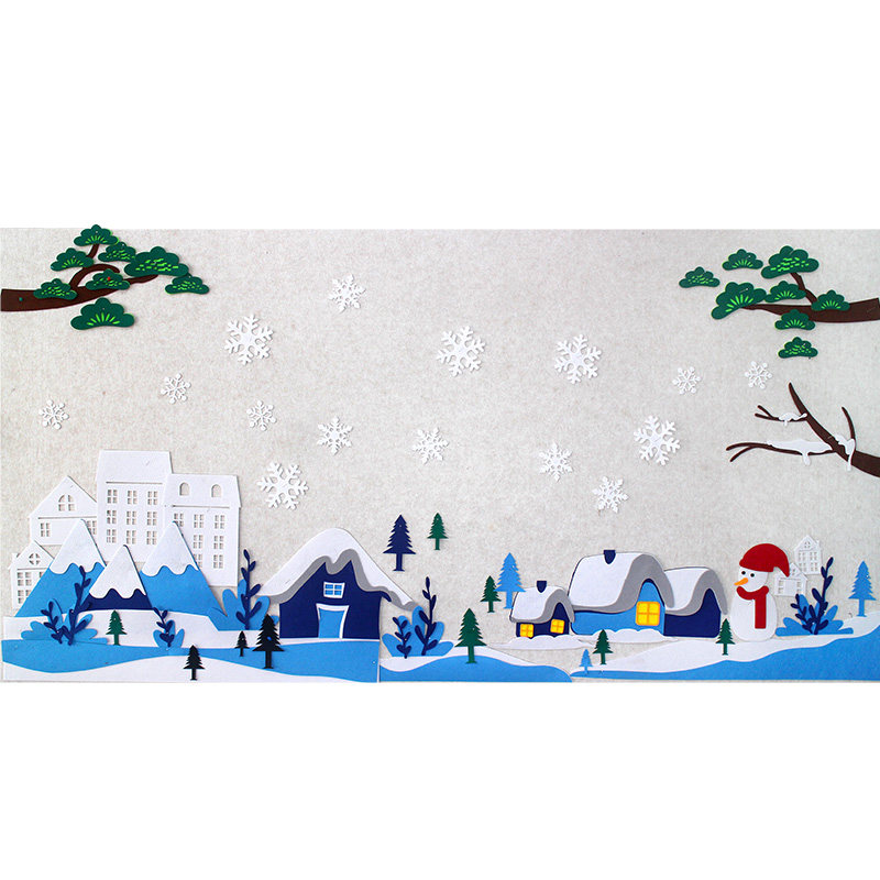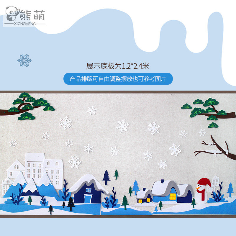 Winter combined set of snowmen 1 large number white house 4 snow melt 2 pieces white snow pile 1 piece of snow house 1 piece of house 1 piece of sky blue snow mountain 1 piece deep blue snow mountain 1 piece