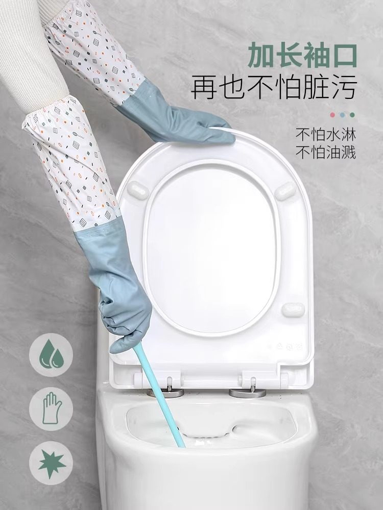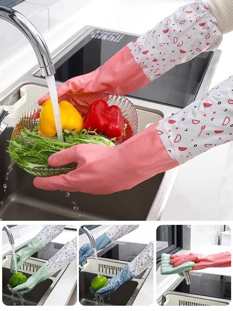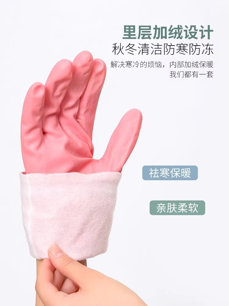 Dishwashing gloves for women waterproof rubber plus velvet winter kitchen durable laundry leather household thickened housework 824