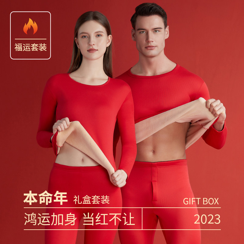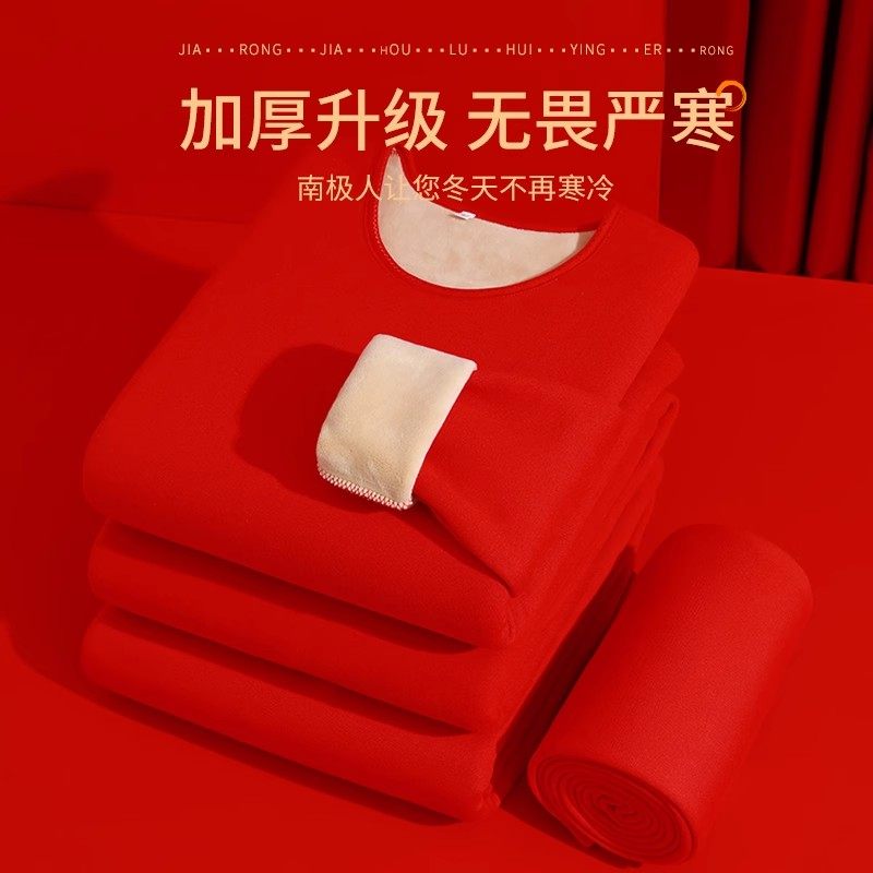 South Pole man's life year clothes suit men's plus suede thickened large red autumn clothes autumn pants with warm underwear for men-Taobao