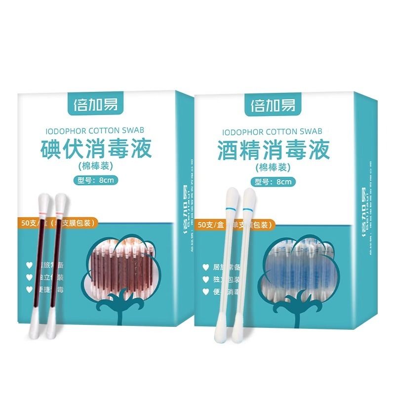 100 Medical Iodine Volt Cotton Sign Disposable Wound Disinfection Baby Umbilical Cord Iodine Wine Portable Cotton Bud Alcohol Cotton Stick-Taobao