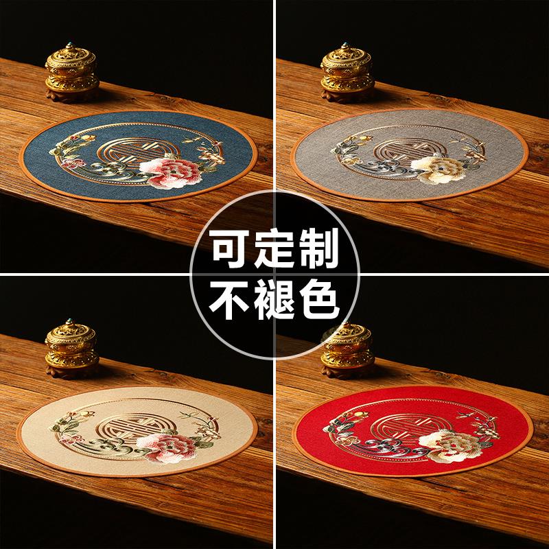New Chinese tea table cup cushion waterproof upscale tea table decoration cushion cloth round table round cushion table cushion anti-burn and heat insulation cushion-Taobao