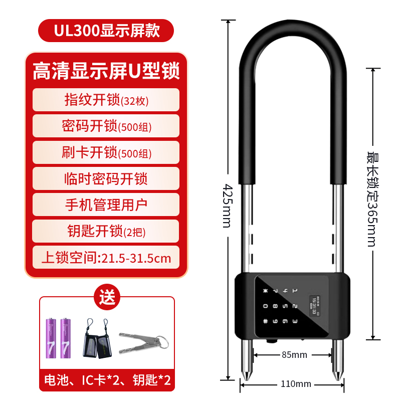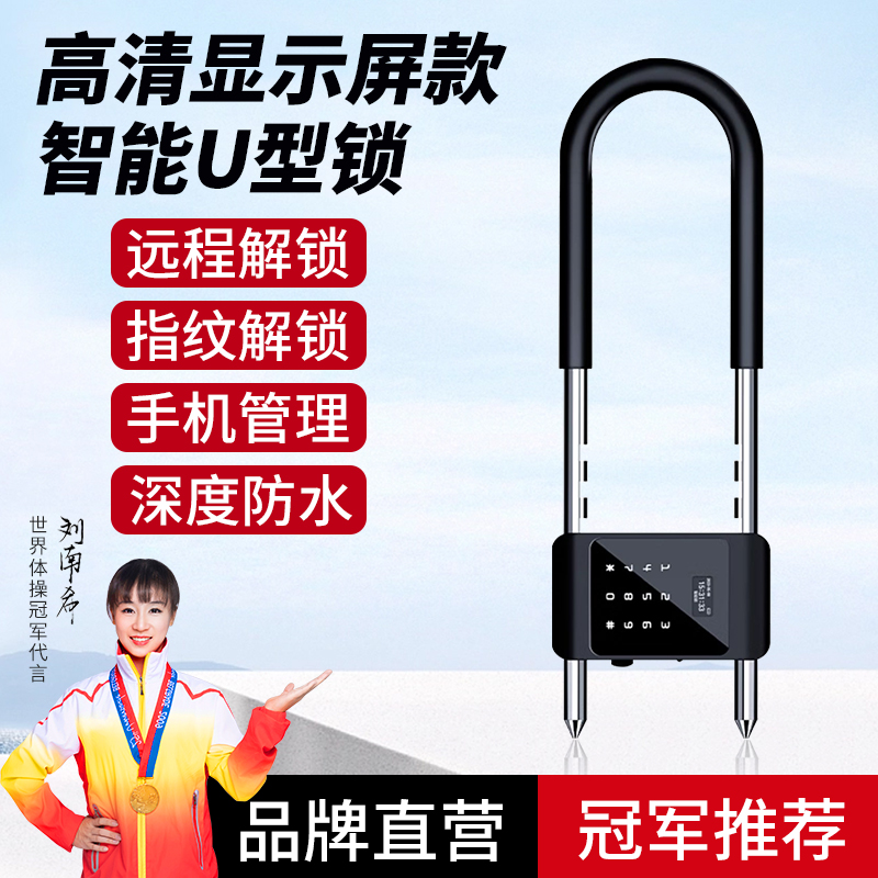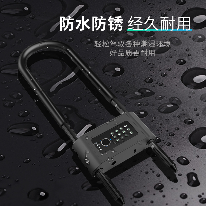 Password U Type Lock Glass Door Lock Fingerprint Lock Office Storefront Shop Smart Padlock Waterproof U-Shaped Insert Lock Anti-theft-Taobao