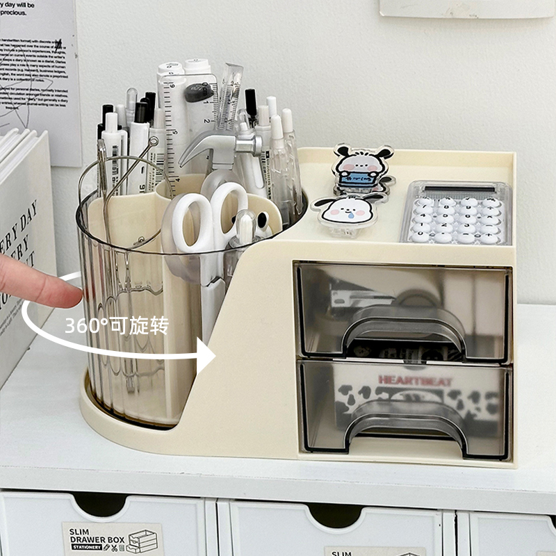 Large capacity pen holder containing box rotatable student desktop children's desk shelf office Multi-functional pen barrel-Taobao