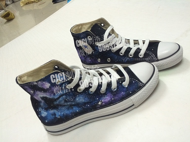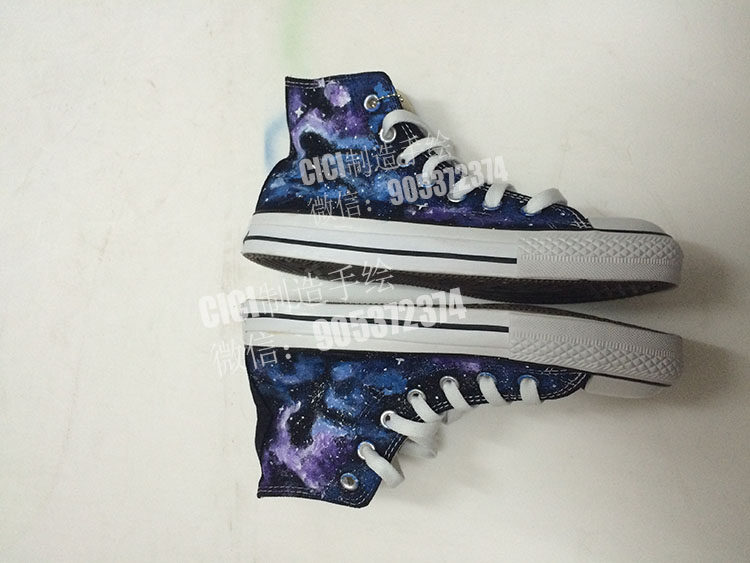 convers*e blue purple starry sky 2 hand-painted shoes for lovers CICI manufacturing-Taobao