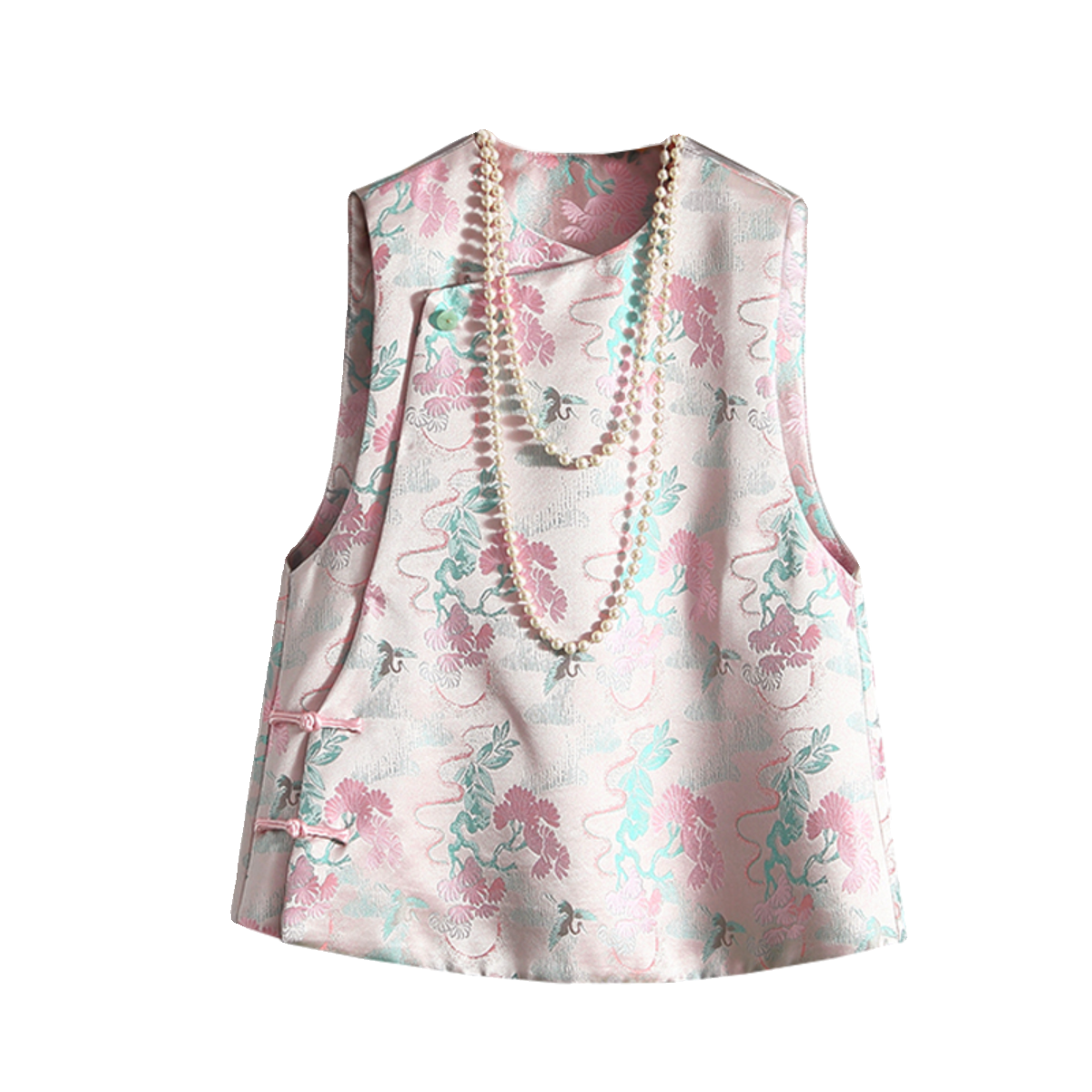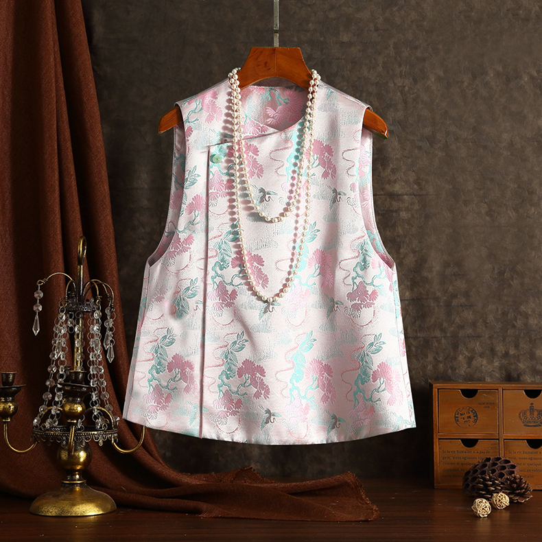Chinese wind waistcoat female autumn and winter new Chinese retro imitation Song Jinjacquard vest Shoulder Short of Tang Dress Qipao Blouse blouses-Taobao
