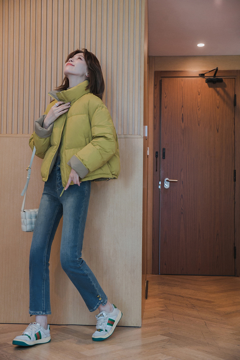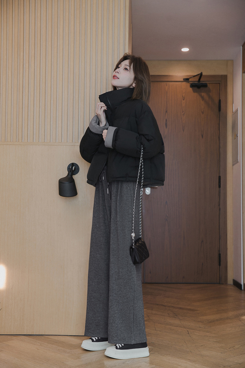 Small Valley Grain Collar Collision Color Cotton Suit Woman 2023 Autumn Winter New Fashion Slim Loose Jacket Small Subcotton Clothes-Taobao