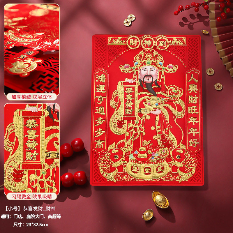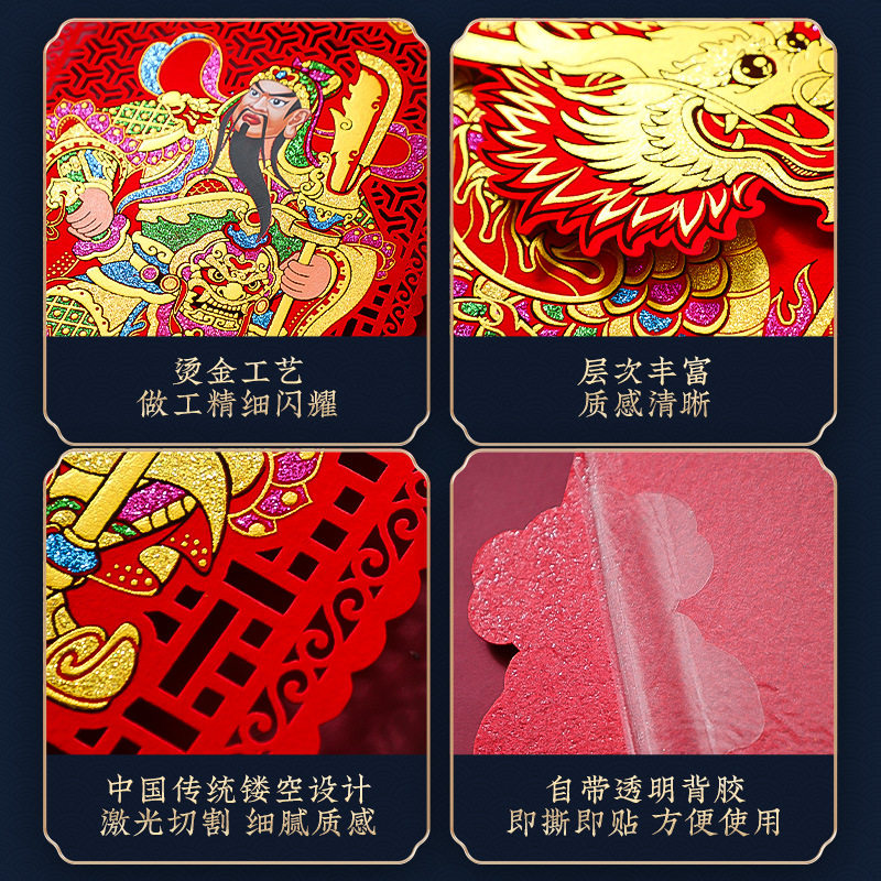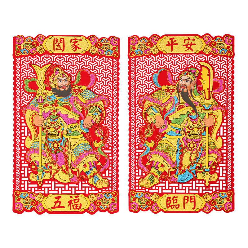 (middle No. 1 pair) Wufu Linmenmen _ Door God small felt cut paper The whole family Ping An (big number 1 pair) Five Fufu Linmenmen _ Door God small felt cut paper The whole family Ping An (middle No. 1 pair) opened the door to see the joy