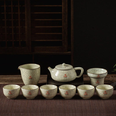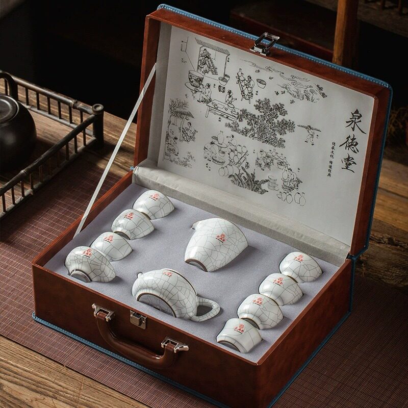 Tea House Penthouse Spring Deutang Ceramic Ru Kiln Tea Set Complete of Ice Cracked Open Pieces Courtesy box Gongfu tea with moon white retro wind-Taobao