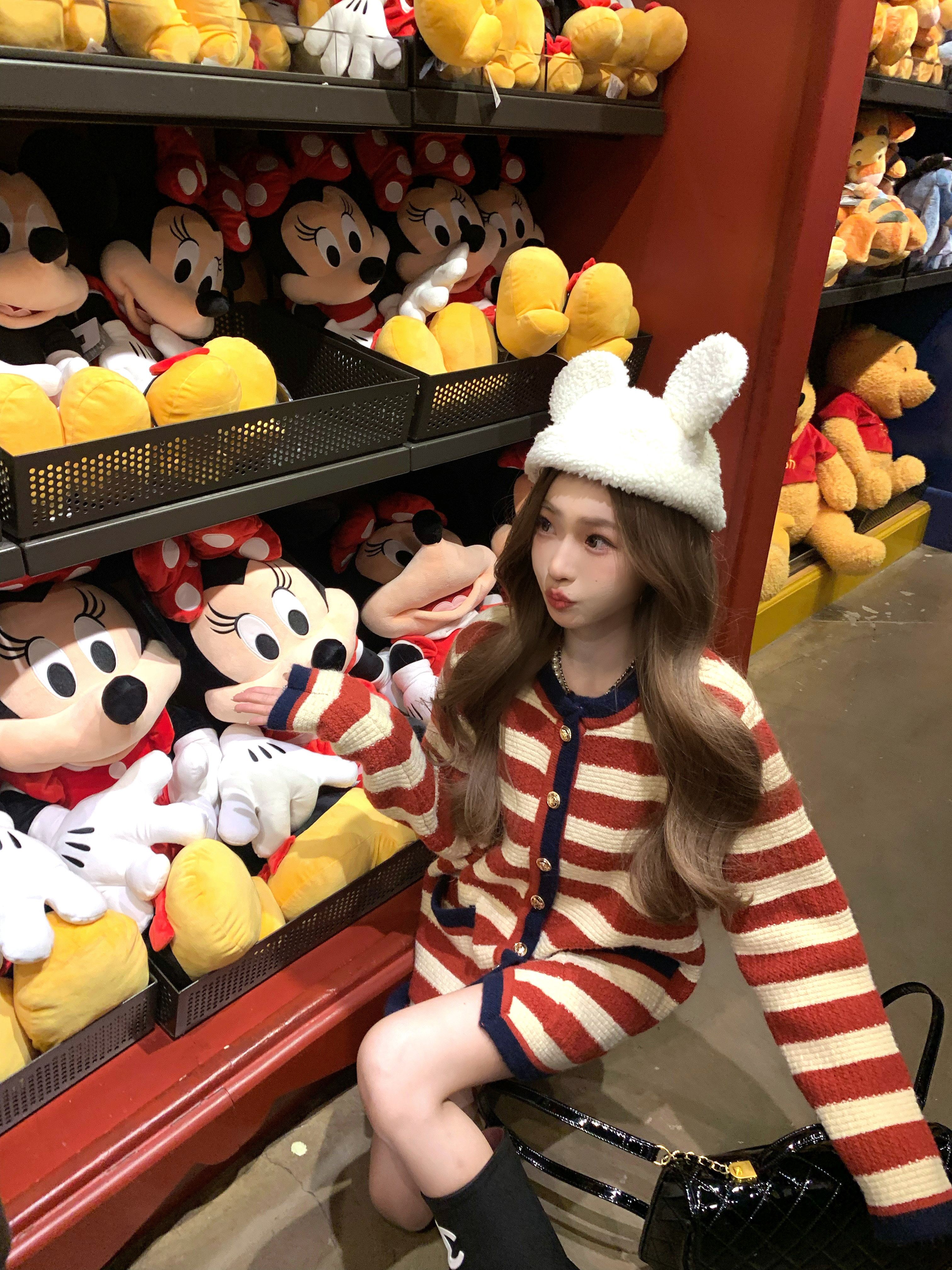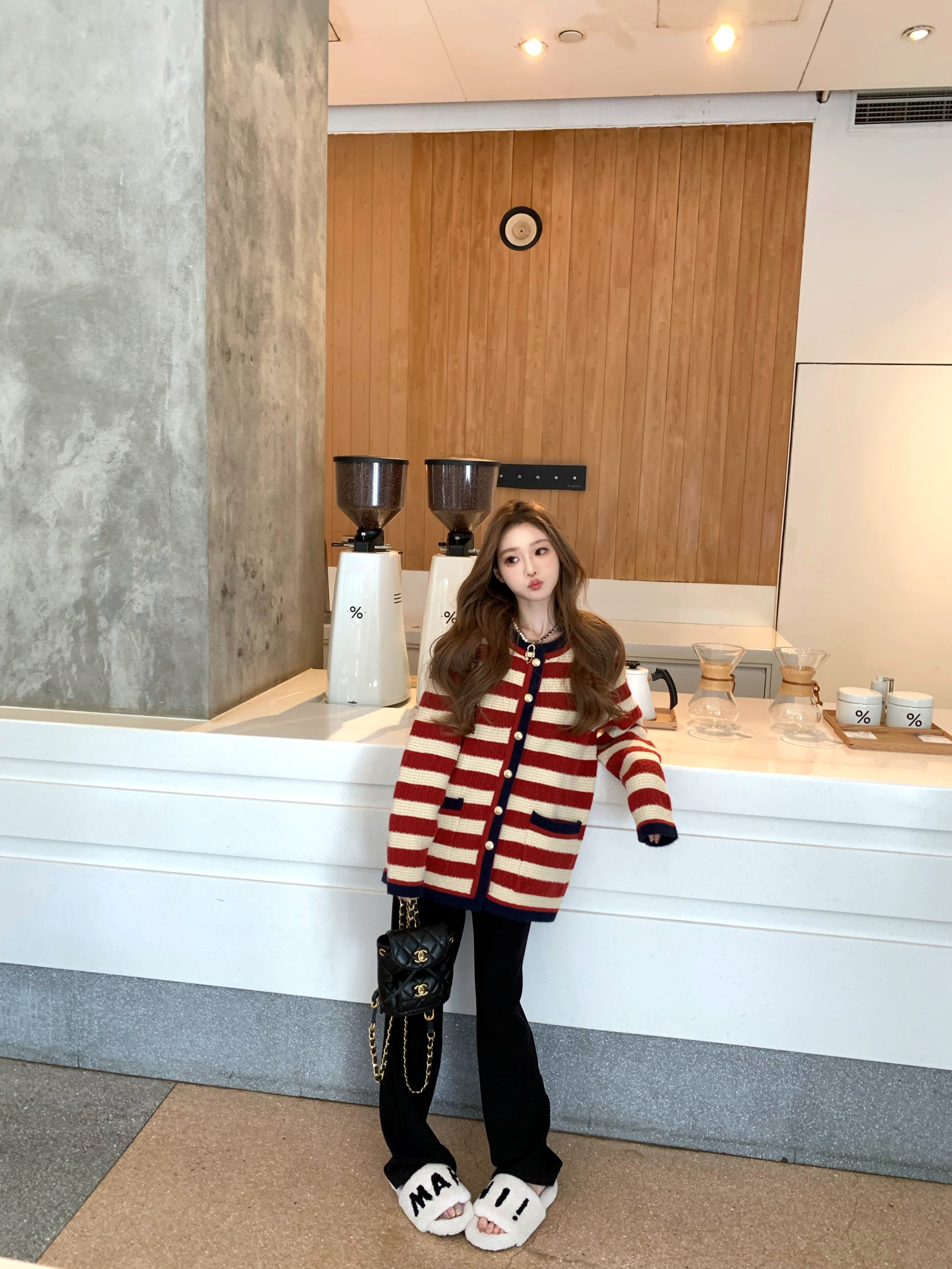 COOLLINE Lin Zixi meets Friday to see striped Christmas red sweater women's cardio-flannel thickening-Taobao
