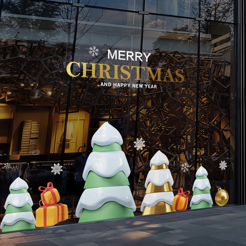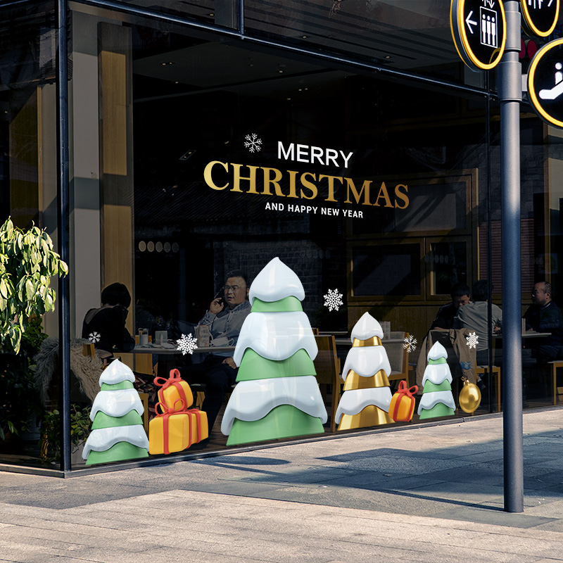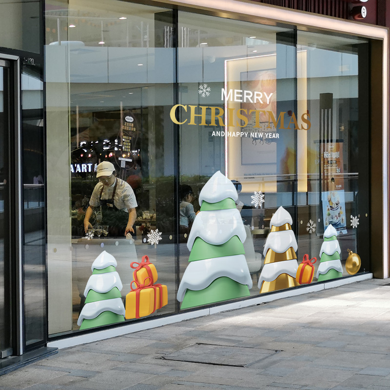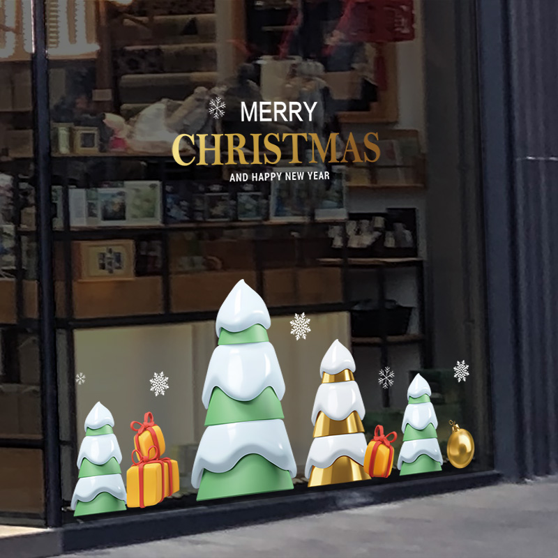 Christmas Christmas Tree Decorative Christmas Scene Placement Glass Sticker Windows Applie STATIC STICKER STORE ATMOSPHERE-Taobao