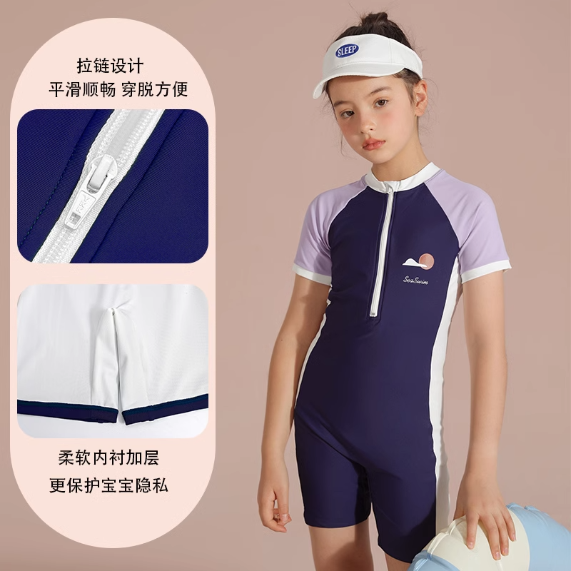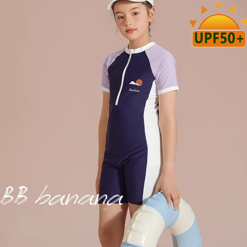 Children's one-piece girl's boxer swimsuit for middle-aged and older children, conservative, junior high school students, professional sports, quick-drying, with chest pad, hot spring