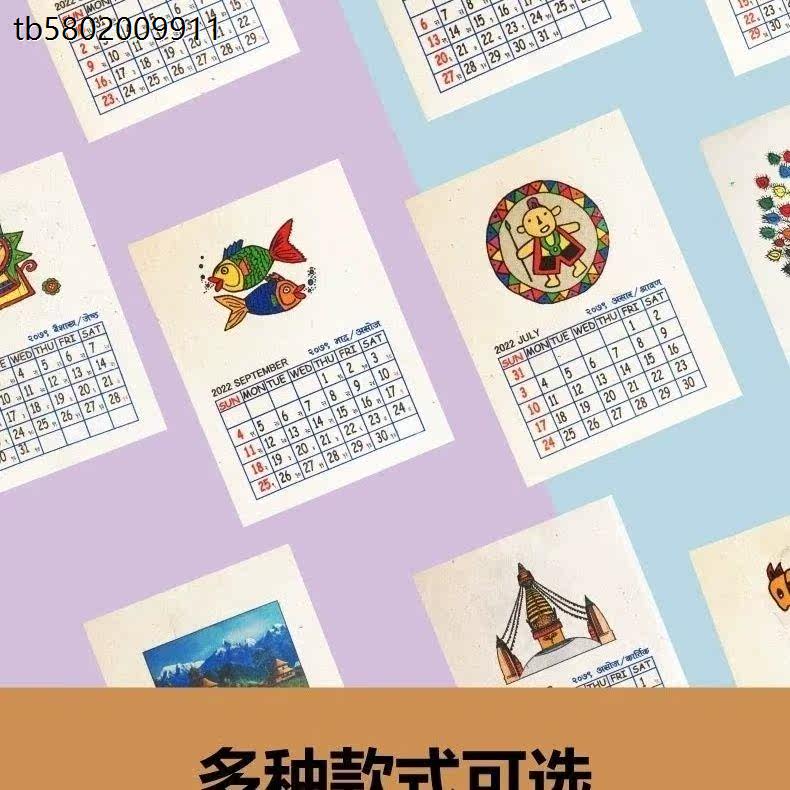 Nepali calendar 2024 Calendar LOKTA Plant paper Traditional handmade paper hanging wall-style mini-version hanging calendar-Taobao