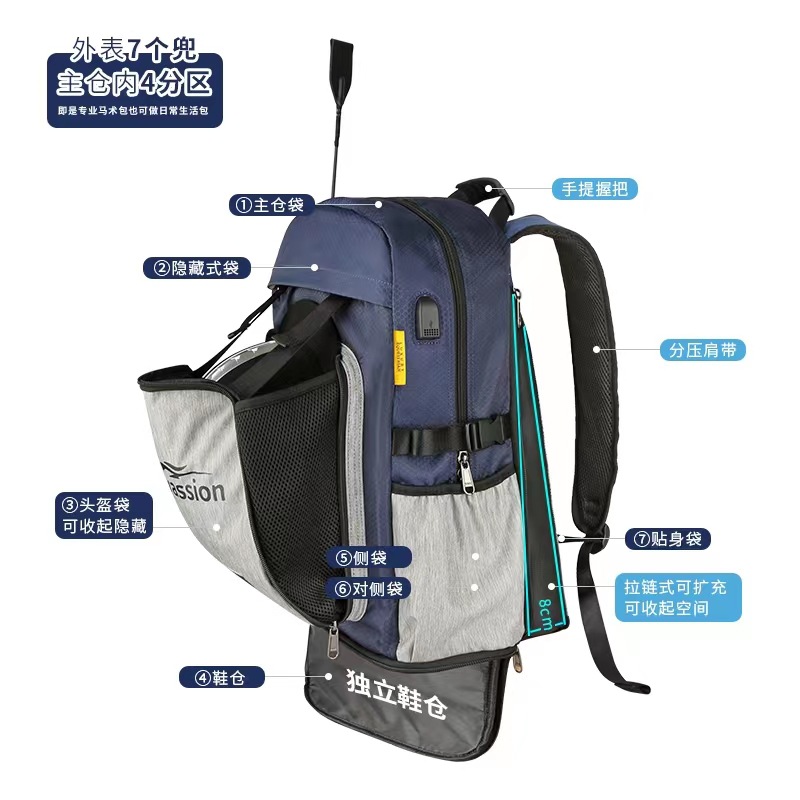 caavassion Oxford Bummagestrian double shoulder bag rider bag multifunction partition-Taobao