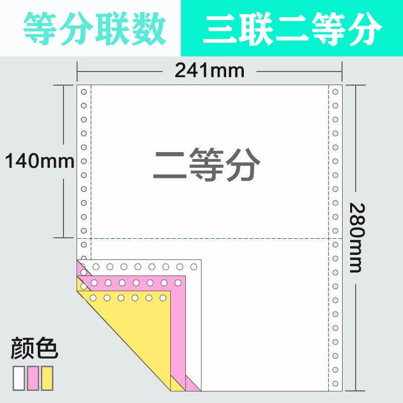 241-3-layer 2-equal carbonless color needle-type computer copy paper triplet two-part invoice
