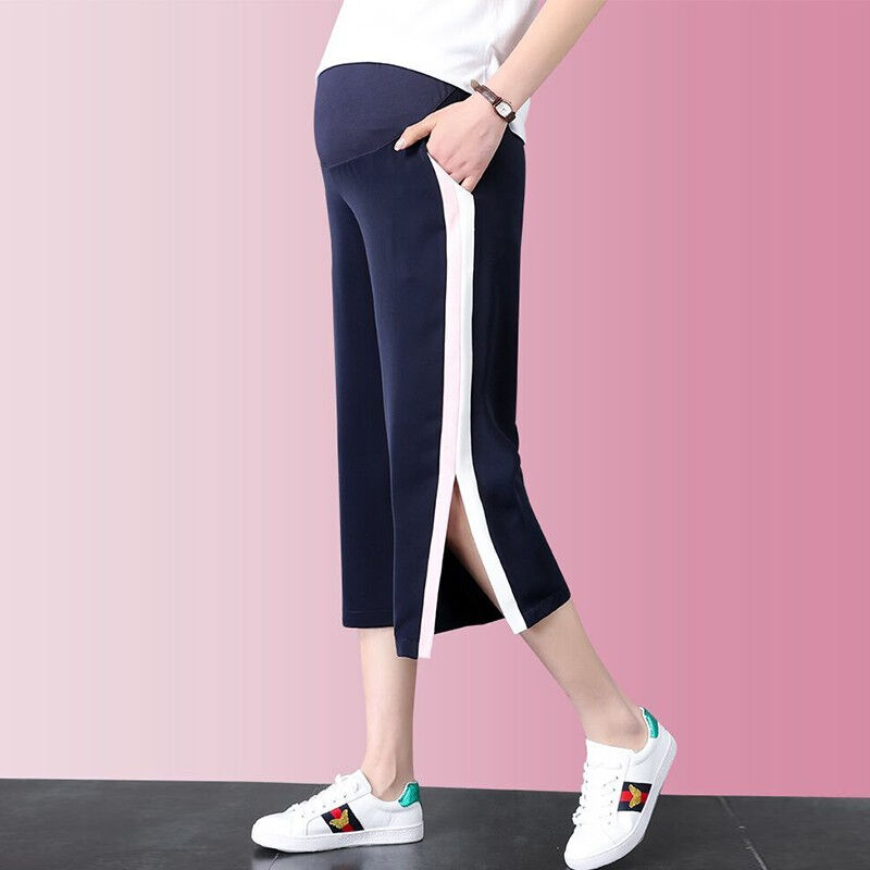 Summer thin Pregnant Woman Pants 7 Pants Outside of Fashion Loose Broadlegged Pants Pregnant 7 Pants Snow Spinning Summer Dress Cool-Taobao
