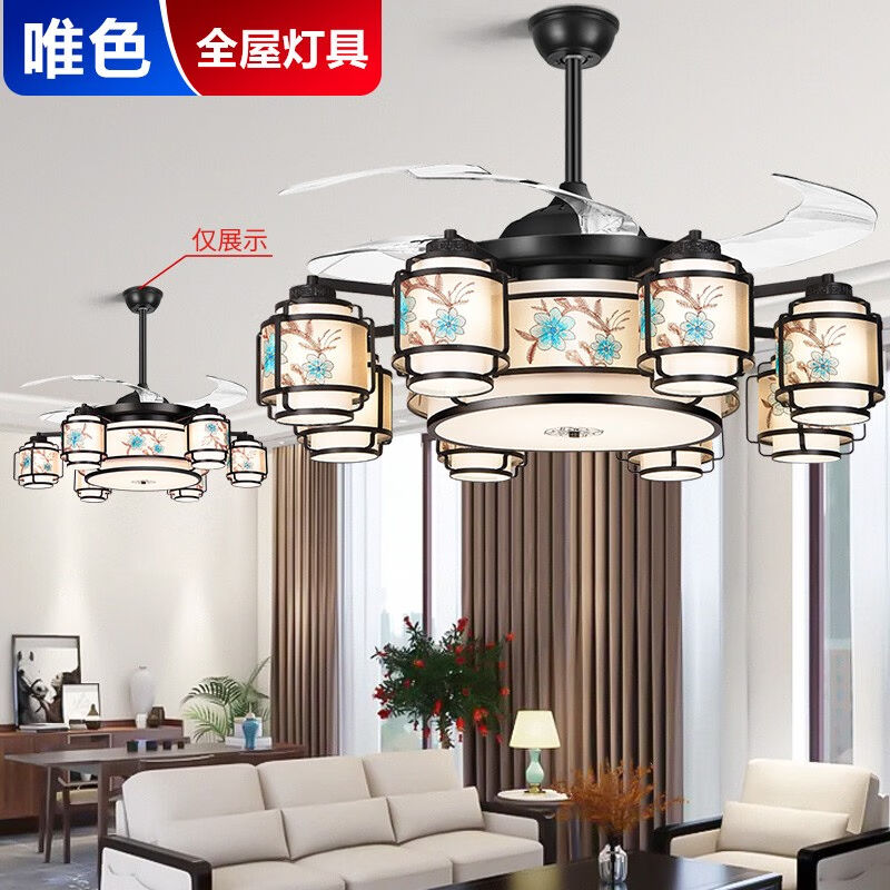 Manufacturer's meritocratic fan light New Chinese living room pendant lamp invisible ceiling fan lamp hall Electric fan lamp with electric fan headlight-Taobao