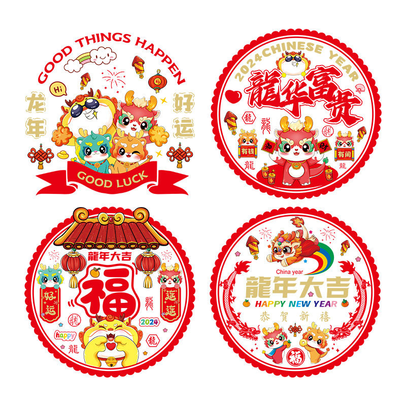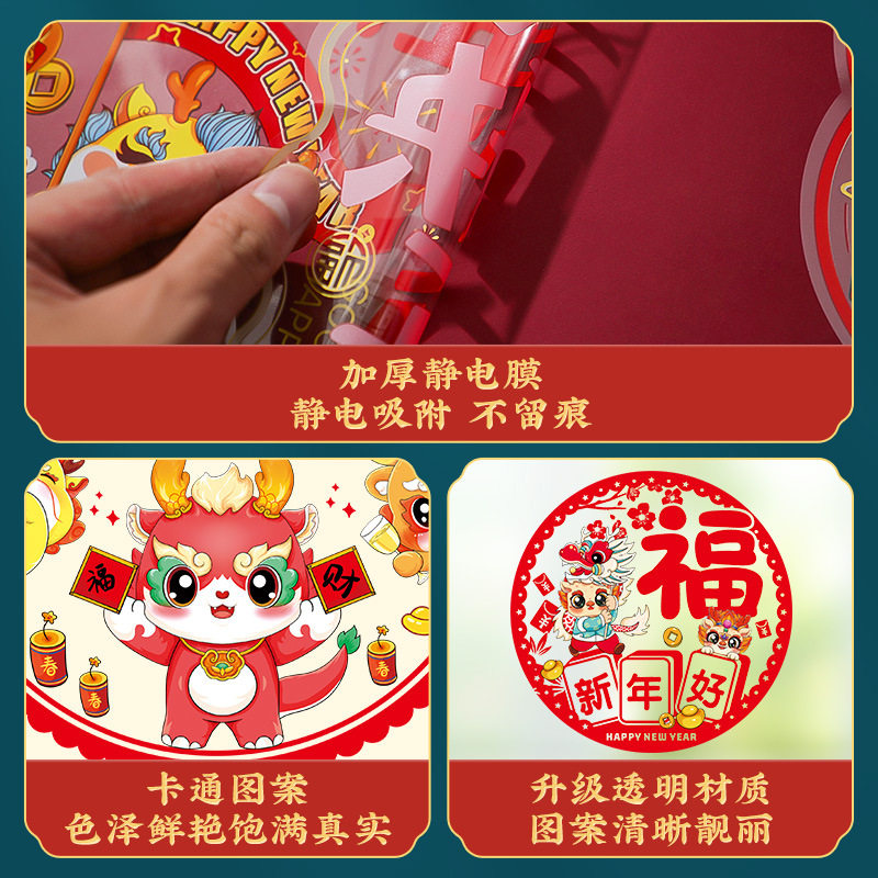 Dragon Year 2024 new window Flower New Year Scene arrangement electrostatic stickers New Year Foostyle Decorative Glass Door Sticker for Spring Festival-Taobao