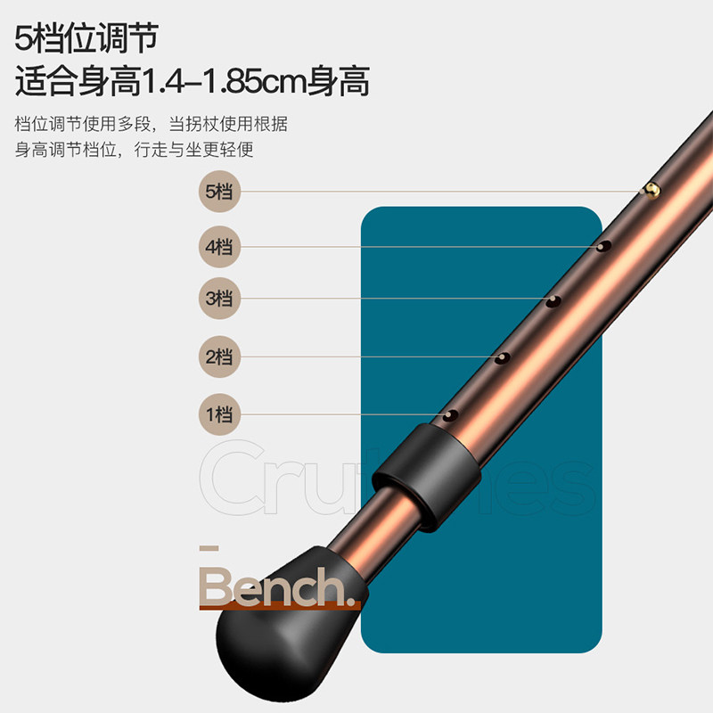 (highly fixed) Dual-use sitting crutch for the elderly-Coffee color (highly fixed) Old people Dual-use sitting crutch (Bow Word Armrest) Coffee Color Five Gear Height Adjustable (Bow Word Armrest)